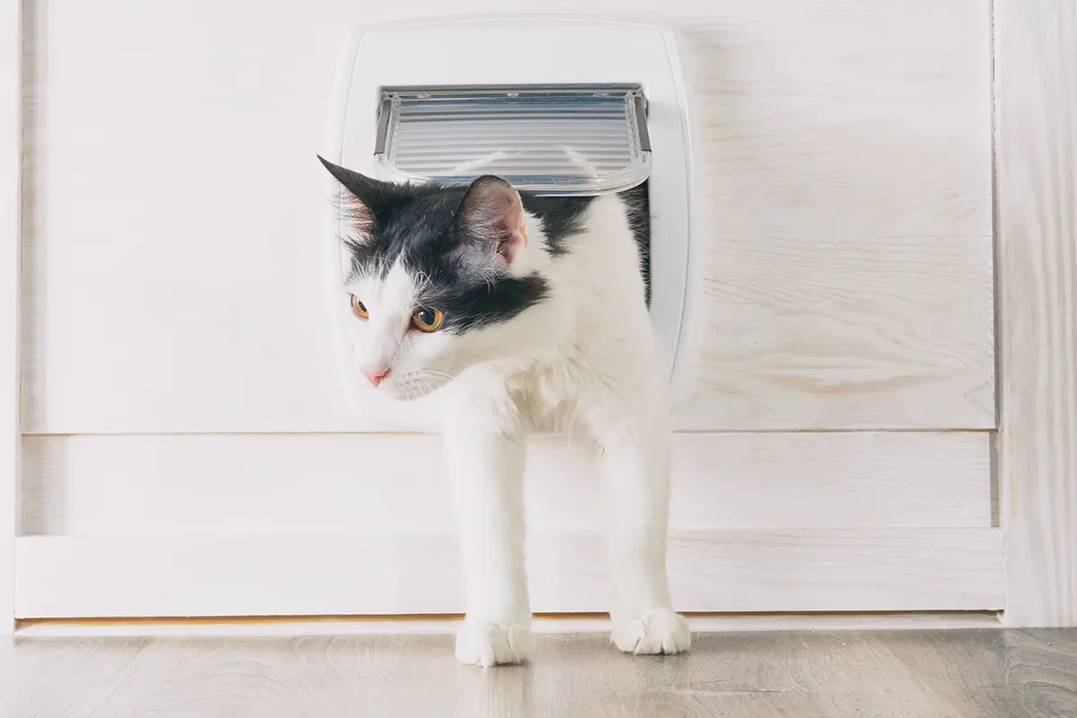 猫が入っても問題ない部屋にはペットドアを。